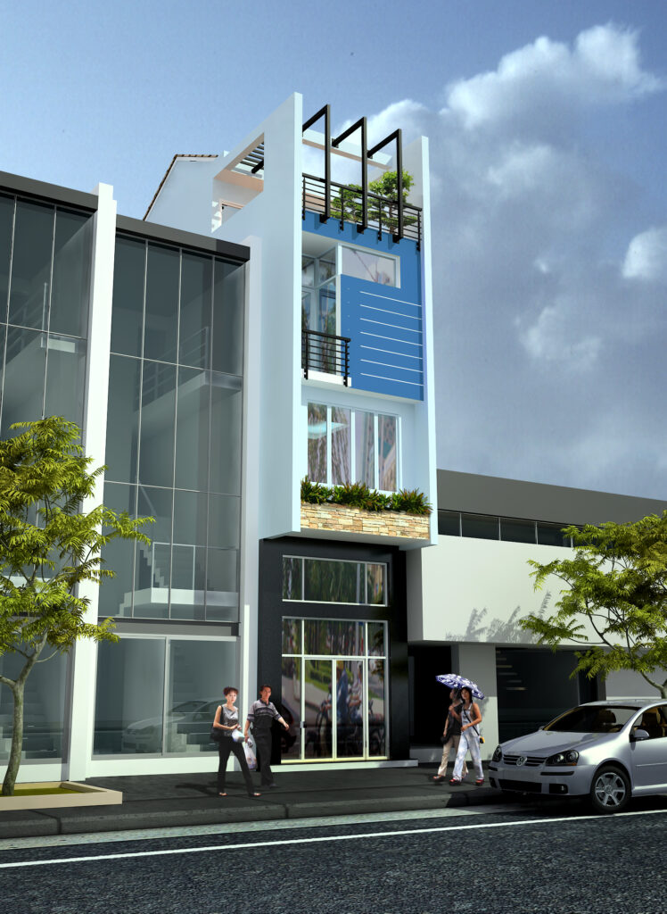 • Điểm nhấn: Thiết kế giếng trời hoặc ban công thông thoáng, đón tối đa ánh sáng tự nhiên và luồng khí tươi cho các tầng.